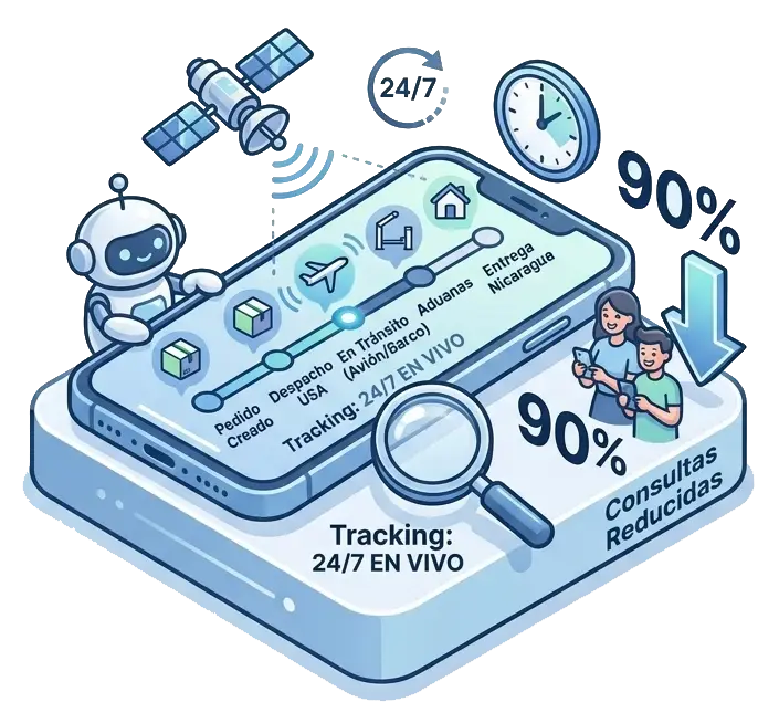 Línea de tiempo visual para que tus clientes rastreen su carga 24/7 desde su móvil, reduciendo consultas en un 90%