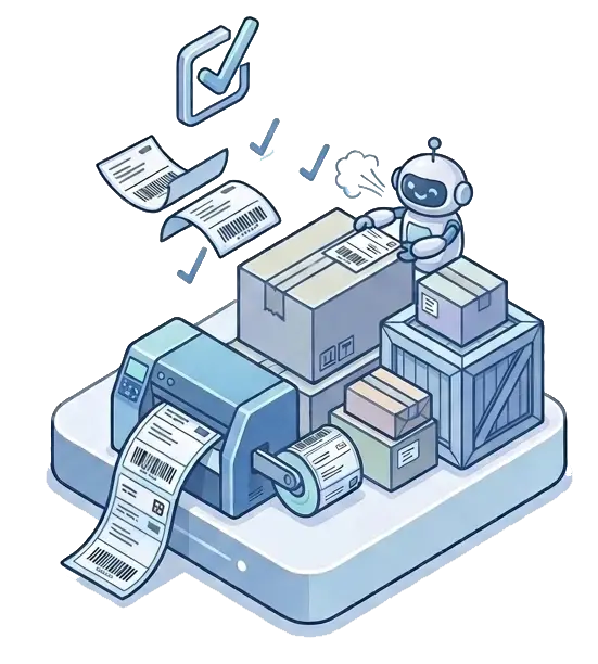 Genera facturas y etiquetas de envío de forma individual o de forma masiva con un solo clic, listas para imprimir y pegar.