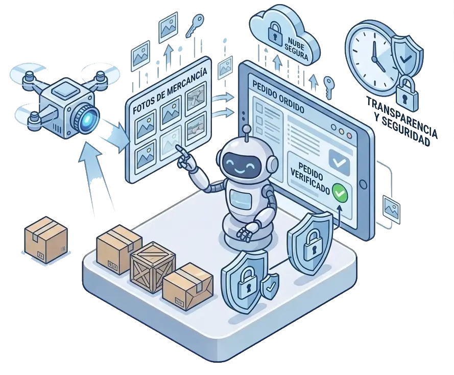 Permite subir y visualizar fotos de la mercancía directamente en el pedido, garantizando transparencia y seguridad.